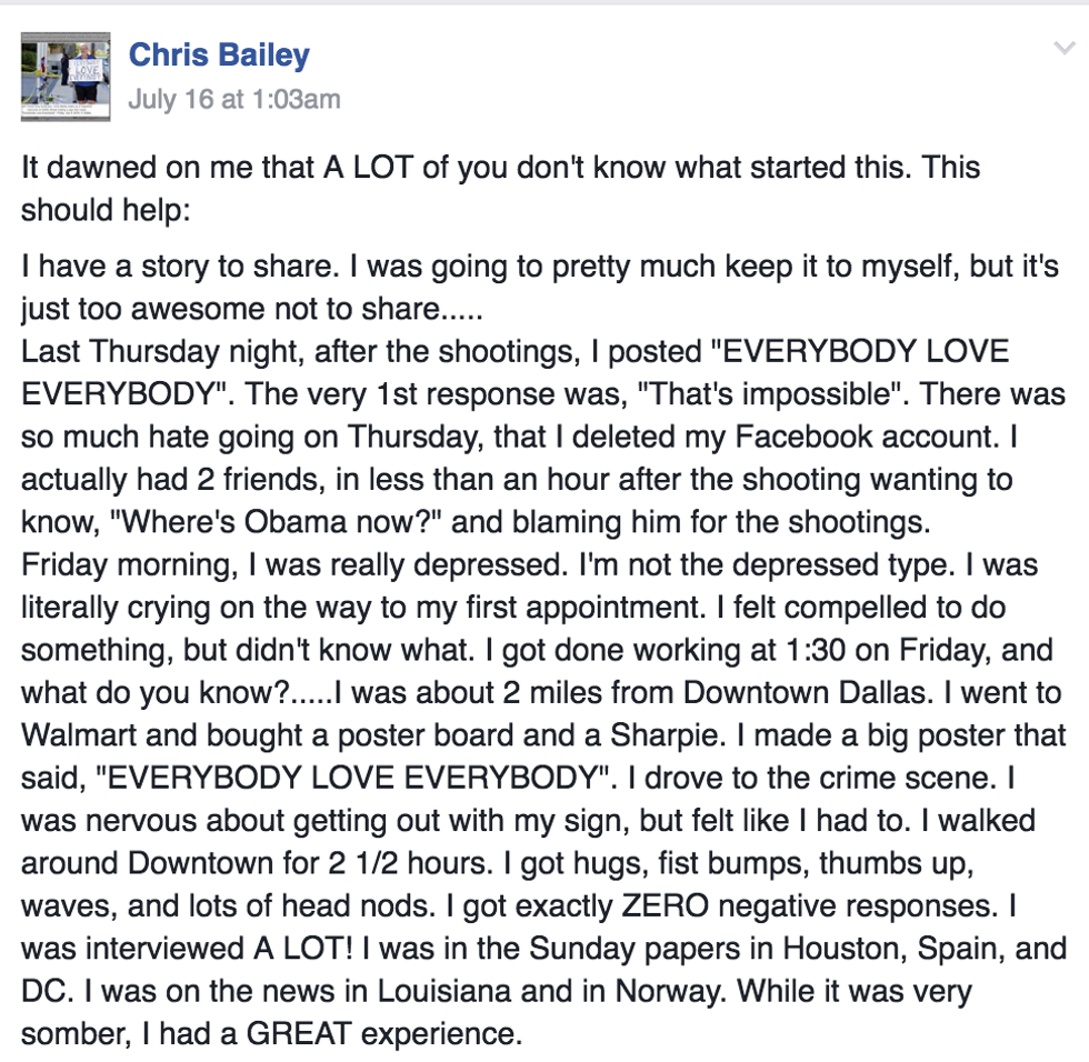 Here's the story of why Chris started what is now a global movement called "Everybody Love Everybody".