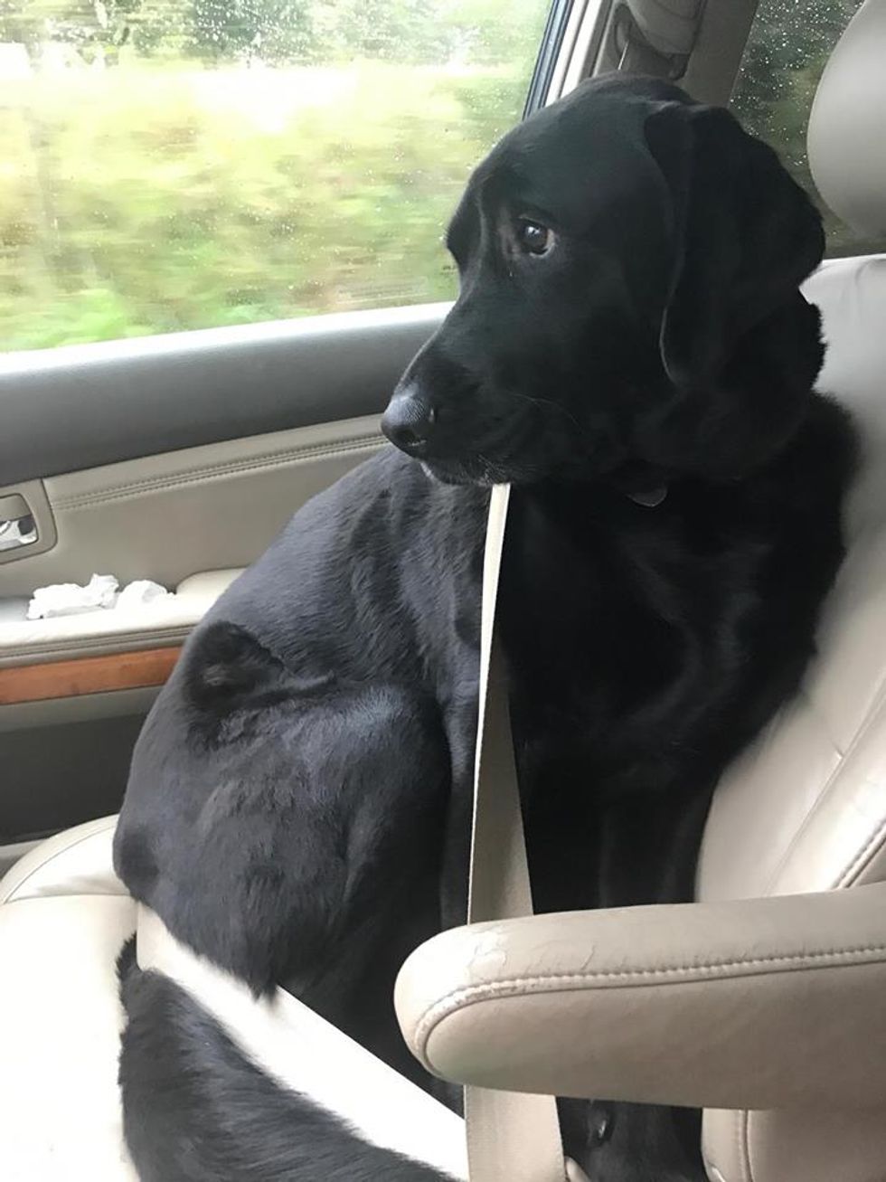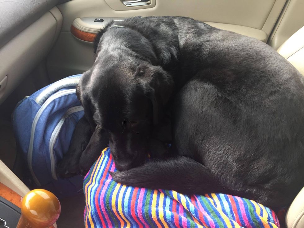 Who knew a ninety-pound lab could curl up so tight in a seat? They can both sleep anywhere, anytime and will try to squeeze themselves into where they think they'll fit.