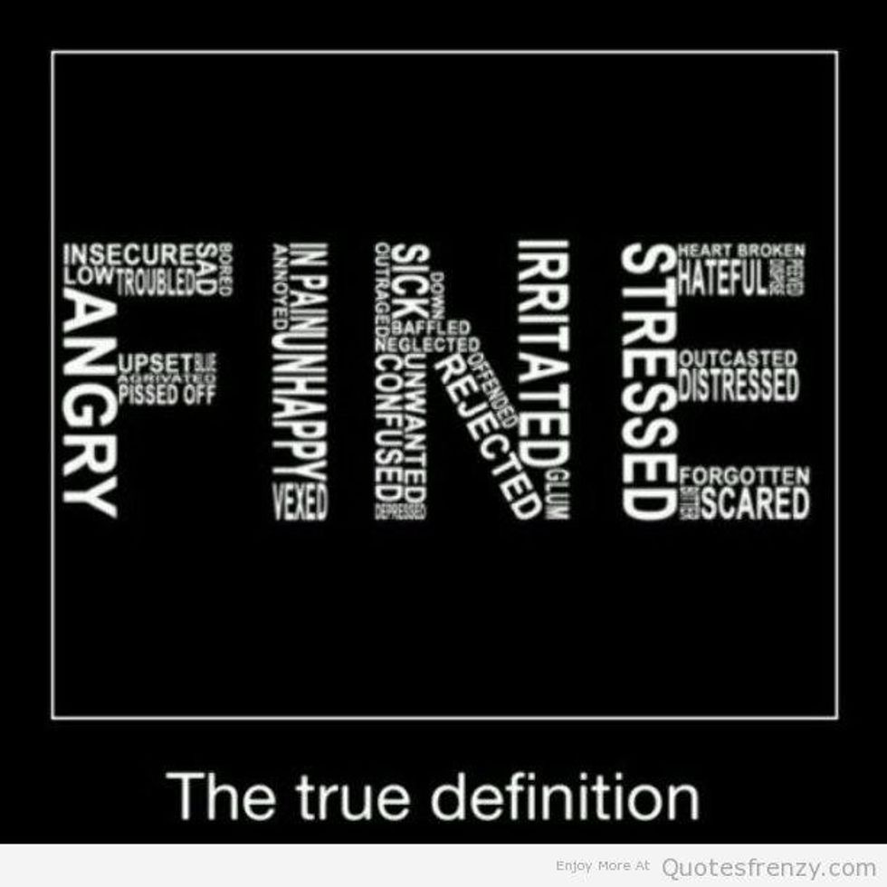 I have always wondered what it would be like for us to truly share who we are and what we are going through. But most of us, say "I'm fine," when asked, "How are you?" Are we really? Because most of the time when we reply fine, we aren't fine at all.