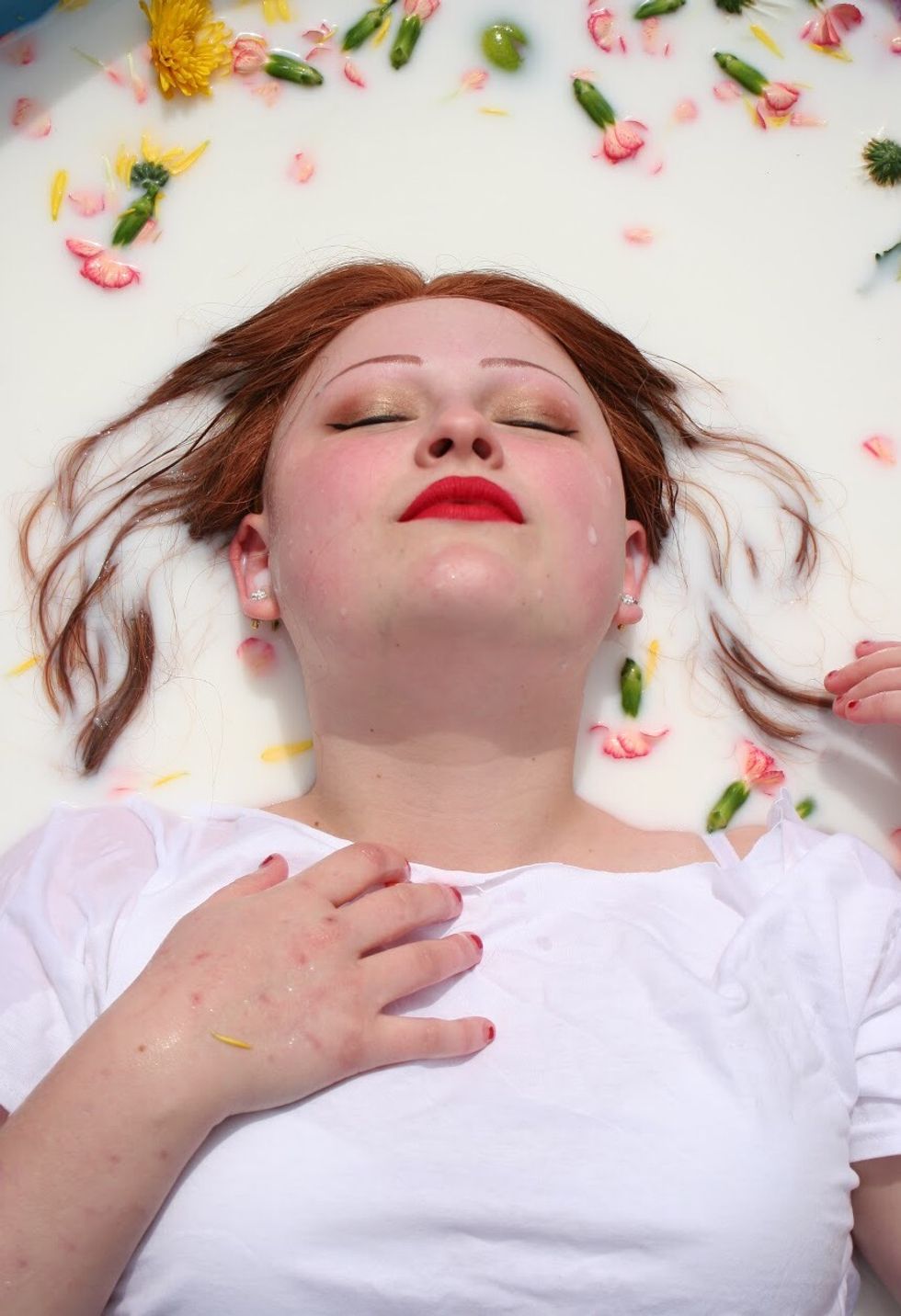 Who knew all it takes is a pool of milk, flowers, and a goddess to create such a mesmerizing photo?