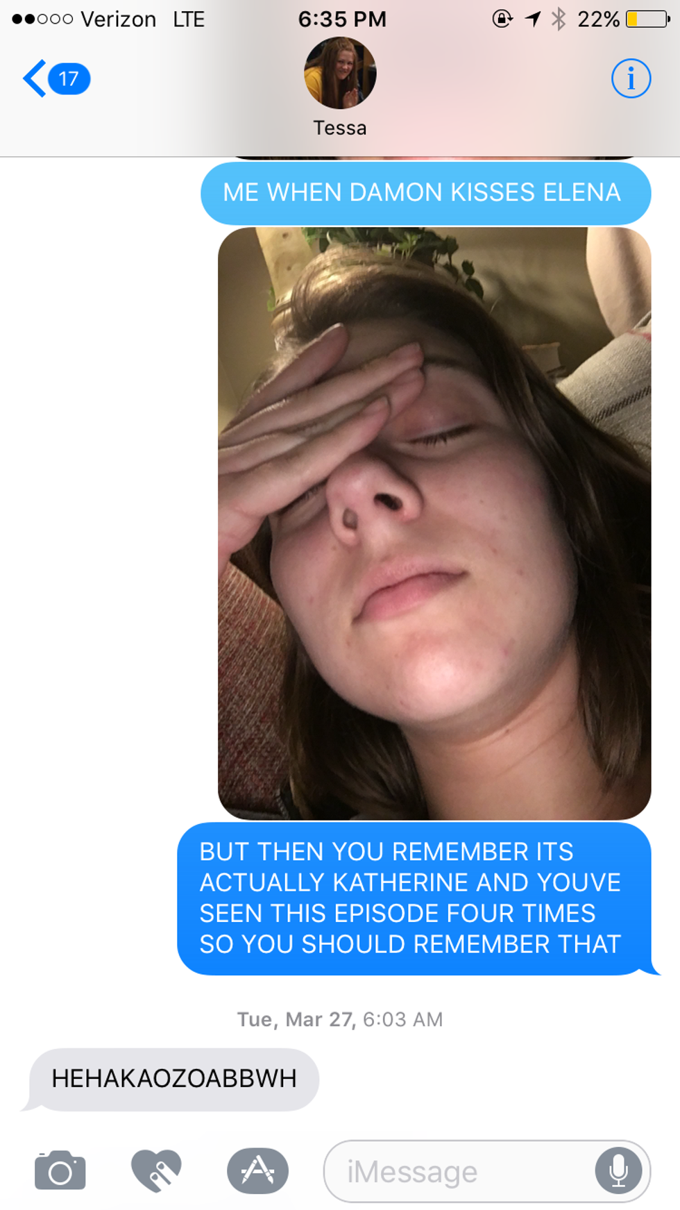 6. She includes you in her near-death experiences when re-watching The Vampire Diaries.