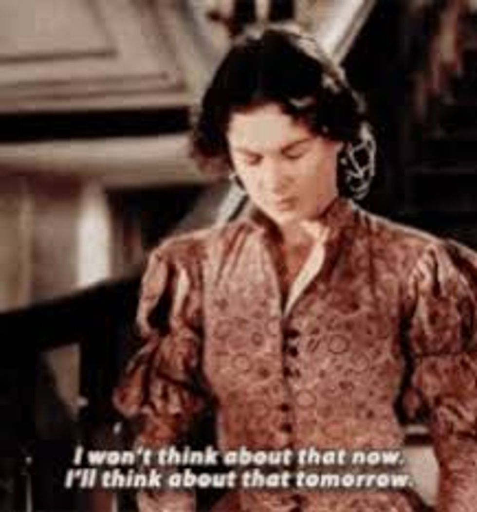 Throughout the movie, Scarlett says all kinds of versions of the phrase "I'll think about that tomorrow." We stress ourselves out so much by trying to tackle every even or inconvenience in a span of 24 hours that it makes everything worse. We get so much more done and it takes less energy to try and tackle everything in one day.