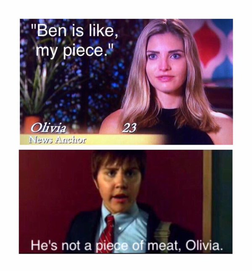 If you watch the Bachelor (which I would highly suggest if you do not) then there is probably one character in particular that you absolutely despise. That character being Olivia Caridi. I'm not sure if it is her psychotic personality or the way she describes Bachelor Ben Higgins as her piece, but either way each time Olivia gets a rose, all of America cringes. Here are some of the best Olivia moments from the Bachelor season thus far: