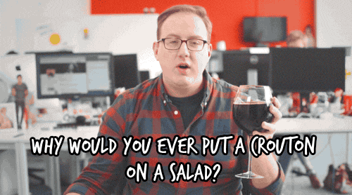 “Why would you ever put a crouton on a salad? You’re taking a good thing and you’re making it hard and then you’re putting it on the worst food ever.”