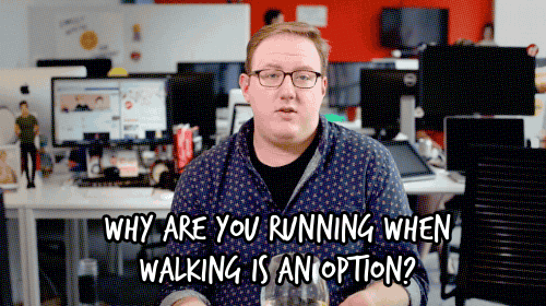 “Those people who are always running in public… Why are you running when walking is an option? Or better yet, sitting. Have you ever tried sitting? Sitting is like a nap for your feet. Unless you’re literally being chased by a man with a functioning chainsaw, there’s no good reason to be running.”