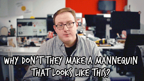 “I’m a size mouse at GAP and a size walrus at H&M. All I want is the same size potato sack loosely covering this monstrosity no matter where I go. Also, everything looks better on the mannequins. Why don’t they make a mannequin that looks like this instead of a mannequin that looks like Tom Hanks after he came back from "Castaway?" What about a mannequin shaped like Wilson for the rest of us?”
