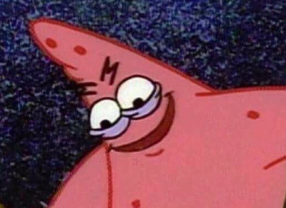 This isn't the Spongebob Caveman meme or the Spongebob Chicken meme. And no, this isn't the Krusty Krab either, this is PATRICK (meme). And Evil Patrick can be applicable to tons of situations, especially in college. You (or you know someone) who can relate to at least one of these.