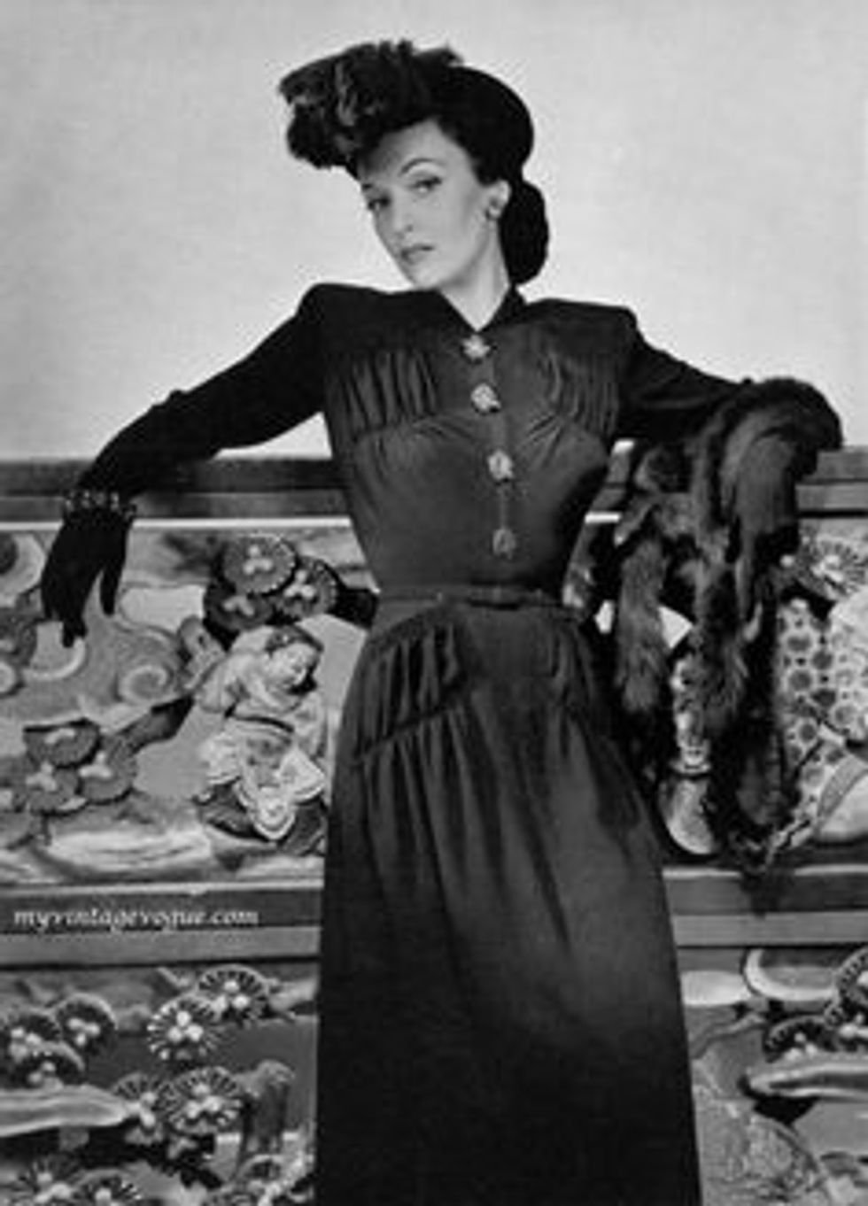 During World War 2 the importance of looking fashionable dimmed. Fabric was mainly being used to create uniforms and necessary clothing instead of going towards fabric designs for evening gowns and lavish outfits. However, fashion was never forgotten and the LBD made its way through the war regardless of the conditions. Less fabric was used to make the black dresses causing the dresses to be knee length, and simpler patterns and designs were created so that the dresses were neither too plain or too fancy. The LBD became more conservative at this time, but could be worn to any occasion by accessorizing it with different jewelry and accessories.