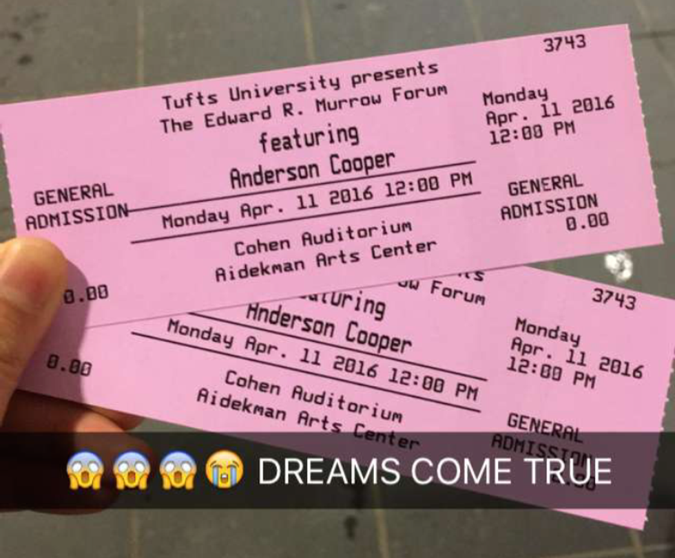 Unless you've been living under a rock, then you know that Anderson Cooper is speaking at Tufts. CNN's anchor of "Anderson Cooper 360°" is headlining the 11th annual Edward R. Murrow Forum on Issues in Journalism on Monday, April 11, 2016, at noon.