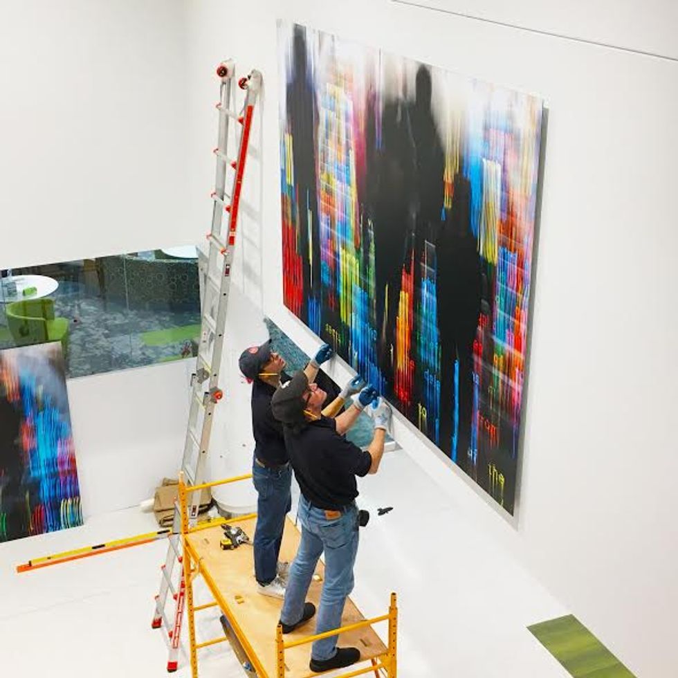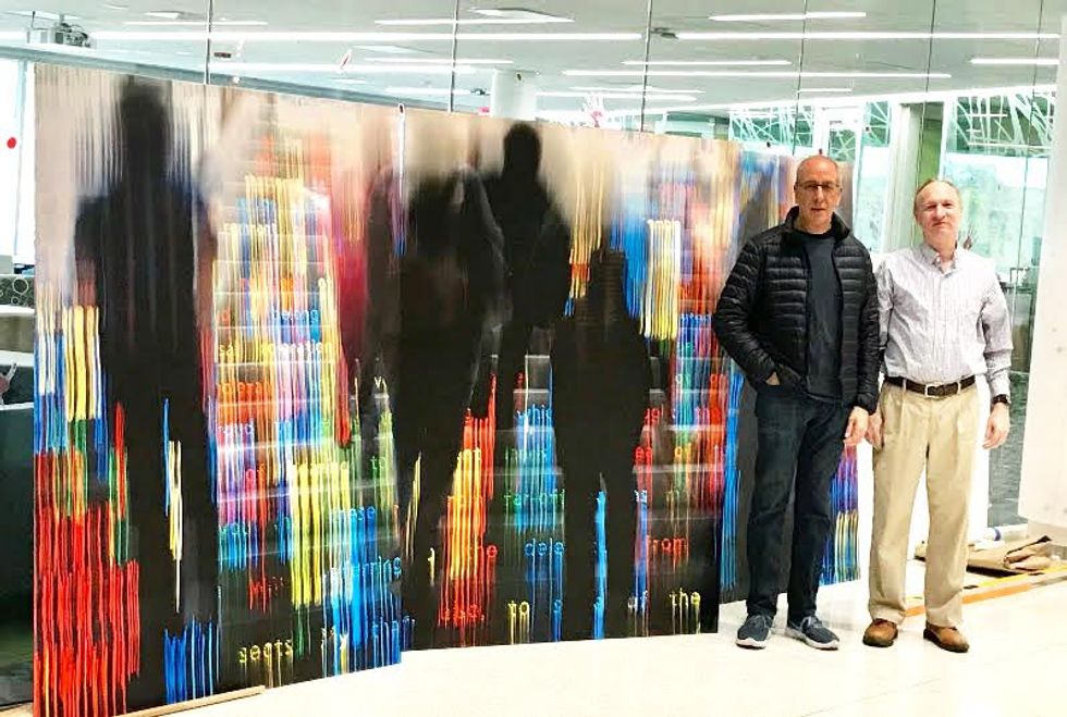 Darryll Schiff oversaw the installation of his print Descending to Heaven - The Parade Commences early this November at Oakton’s Des Plaines, Illinois campus along with Nathan Harpaz, curator of the college’s museum. The print is prominently displayed at 6ft wide x 14ft high located near the Student Center. Oakton’s collection advocates the support of local art and makes an active effort to present established Chicago area artists. The fine art collection focuses on modern and contemporary art reflecting excellence and educational value through a diversity of genres and aesthetic principles.