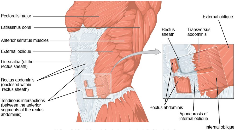 As you can see from the diagram above you have four major abdominal muscles. You may feel exercises like supine (laying on back) leg lifts to place more stress of the lower part of your abdominal muscles and crunches more towards the top of your abdominal muscle, but you are simply working different parts of the same lengthy muscle.