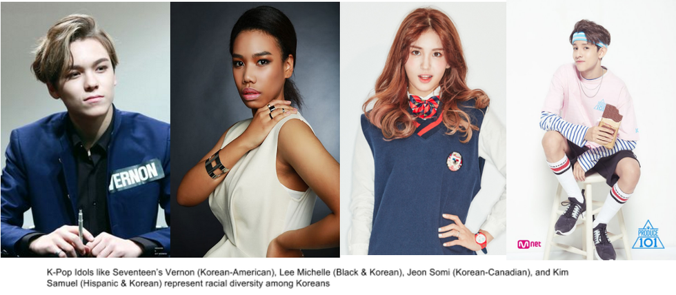 To some extent I agree with this statement, however, I don’t think adding white people to K-Pop (or anything in general) would be considered as diversity; in fact, the reason diversity isn’t needed is because K-Pop is used as a form of Asian representation from an American perspective. I dare you to name a popular, successful, and current Asian-American singer in the United States. The only ones that come to mind are Far East Movement (who haven’t been heard in awhile), Steve Aoki (who appeals more to EDM fans rather than the public), and Bruno Mars who’s half-Filipino (however, his Asian heritage isn’t mentioned enough). Having very few Asian artists in the music industry with not enough public recognition discourages diversity in the music industry as it perpetuates the stereotype that Asians don’t pursue careers in music (unless classical music) which then discourages Asian-Americans in pursuing careers in the fine arts. Of course, K-Pop doesn’t represent all Asians and definitely does not represent Koreans and Korean music; however, the Hallyu Wave influenced large international fan bases who have grown to appreciate Korean culture through Korean Pop music. As a result, K-Pop music served as a stepping stone for international audiences to appreciate more ethnic media, despite language and cultural differences, and recognize Asians as musical artists, performers, and entertainers. So if EXP actually did promote as an American boy band, their Asian-American member, Koki, would provide some representation, but as a K-Pop group they wouldn’t exactly be considered as a diverse group. There’re no white K-Pop artists because White artists can prosper in the American music industry, versus a Korean artist establishing a music career in the U.S. who has a very slim chance. In recent years, K-Pop groups have been increasing in diversity: first with Korean-American Idols (United States & Canada), then idols from East (China, Taiwan, and Japan) and Southeast Asia (Thailand), and biracial/mixed race idols more recently. <INSERT PICS> Each of these types of idols represent different Asian subgroups and experiences that provide representation and establish a connection for Asian fans. Therefore, it is essential for K-Pop artists to be Asian because the music genre serves as a platform for Asian representation that is absent in U.S. media and validate the identities and passions for Asian fans.