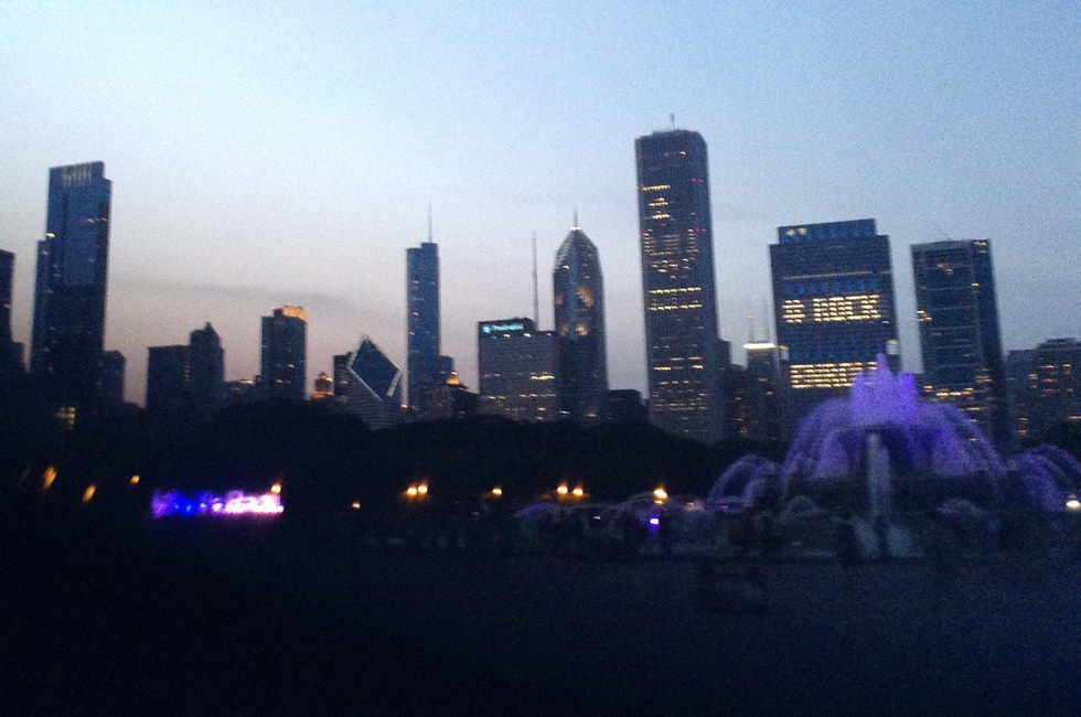 We walk straight past the Farmer’s Market and vendors lining the streets to fill up our water bottles and grab a slice of three-layer Chicago pizza before we head straight to one of the smallest stages at the park. This time we don’t even circle Buckingham Fountain in the middle; we turn left down the road scattered with local food vendors and weave our way through trees and people until we make it to the little stage.
