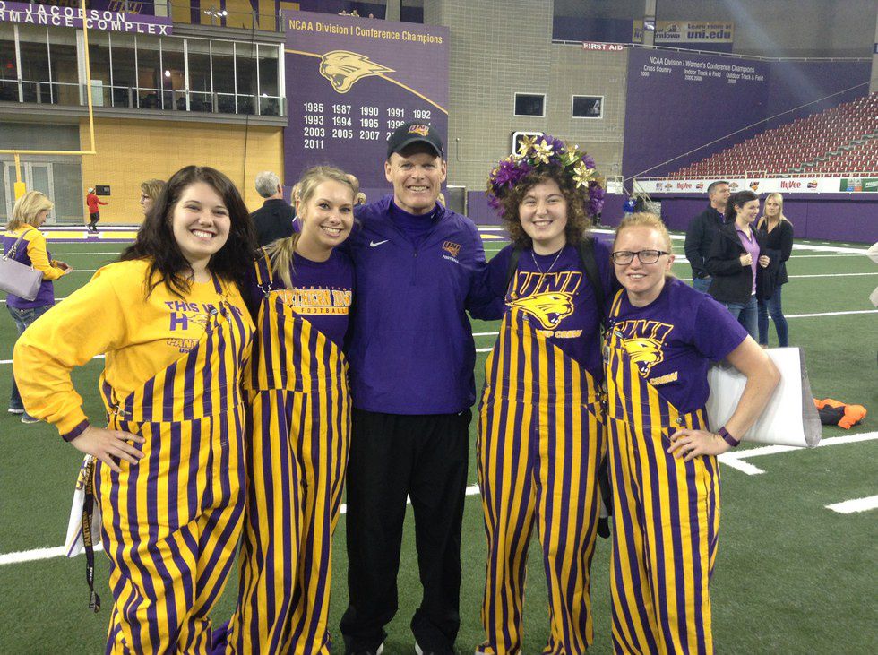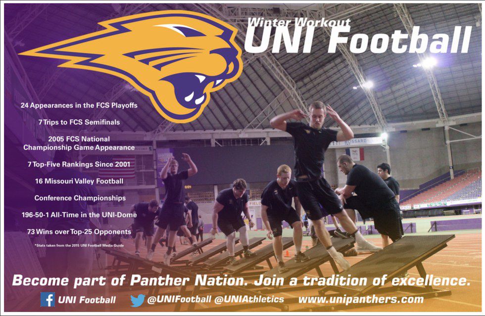 The coaches always say that we are part of the team. They've introduced us to some of the players, and of course, the staff. I wouldn't doubt that when you hear "UNI Football team" you think solely of the coaches and players. But that's just the tip of the iceberg. Yes, there are the players and coaches- the "stars" of the team if you will- but there's a whole behind the scenes team that are rarely highlighted as much, such as: the strength and training staff, the academic advising staff, the marketing team, and lastly, us interns.