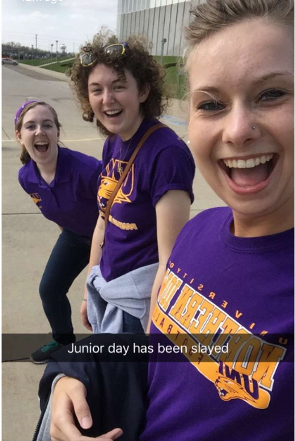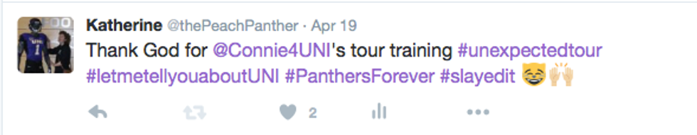 Well, I deal with new recruits a lot. I make graphics to help them envision themselves at UNI as well as set their itineraries for their visit. So, when they actually come- and if I actually have to meet them- it's important to be enthusiastic about the football program as an intern and a fan. (Hopefully) then they'll get enthusiastic and see themselves a little better in that purple and gold.