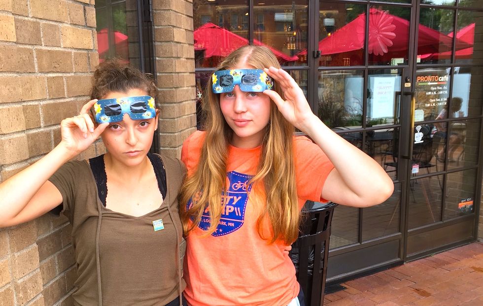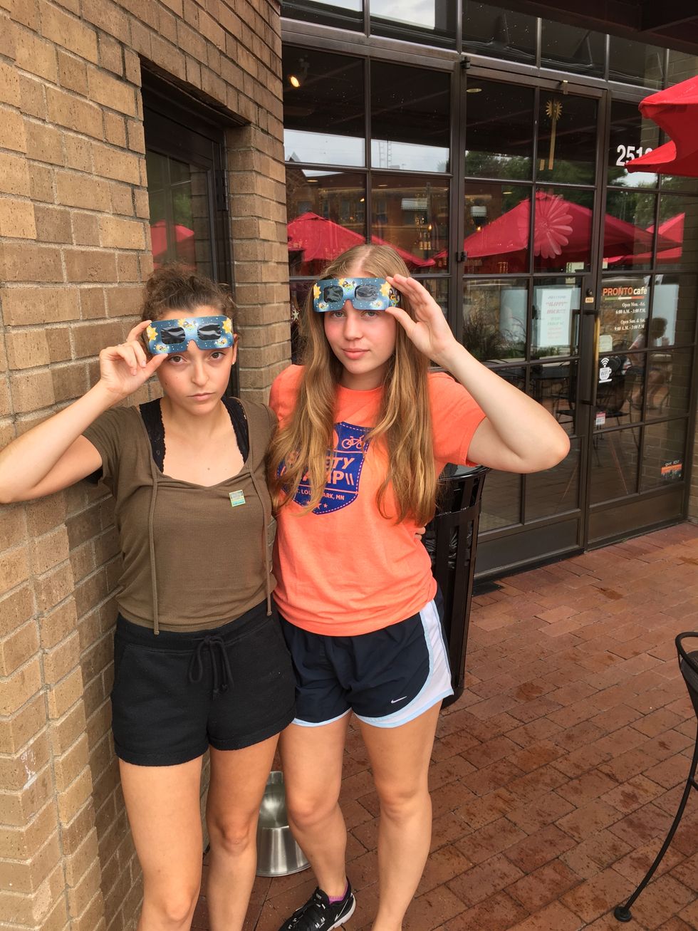 10:00 am- we ended up going to a coffee shop where we ran into a man who gave us eclipse pins which was very kind of him, good thing he had 8 of them.