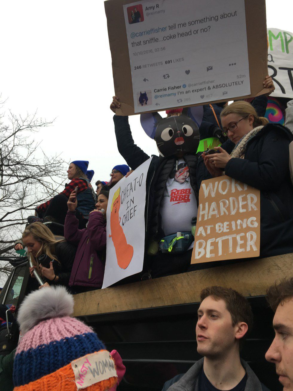 The signs were absolutely fantastic, from Trump puns to fierce feminism lines to giant pictures of uteruses. And then there were the hats. You know what I love most about the pussy hat trend? Someone had an idea for it, shared a knitting pattern to Facebook, and next thing you know, millions of women are knitting their own hats. It’s hilarious and yet touching to see how much of an impact one person can make by spreading the word.