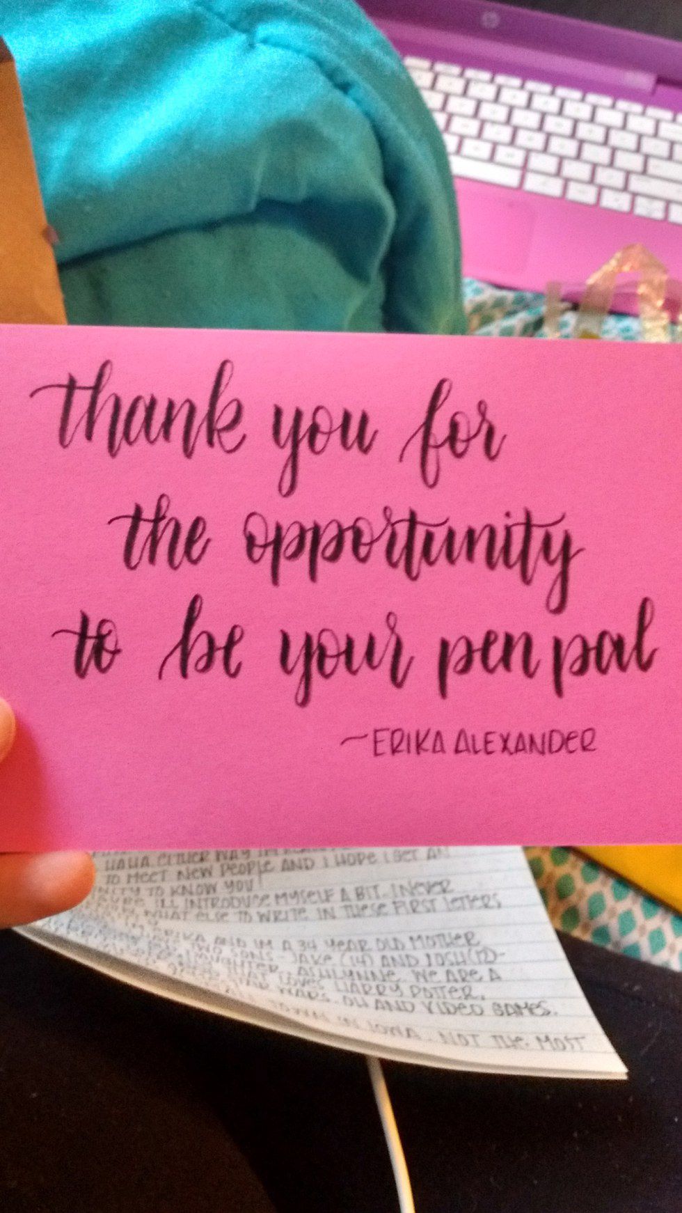 In long terms: being a pen pal is starting to become such an awesome experience. I am in literal awe of it all. I think everyone should have a pen pal to write to. I think everyone should know the feeling of looking forward to a letter from someone. Everyone should be excited to find the little things someone drops into an envelope.
