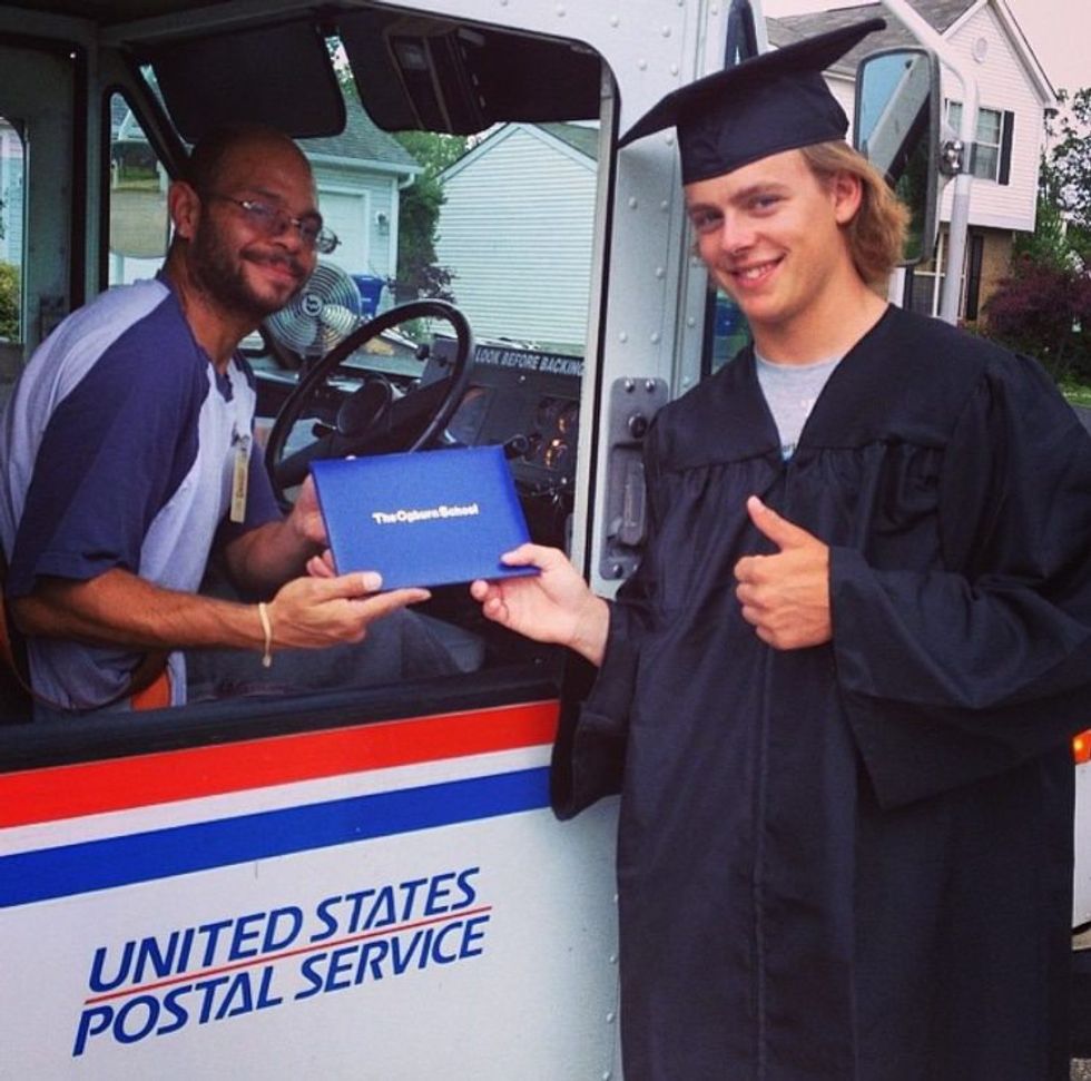 "Please join us for graduation ceremonies in our driveway, courtesy of USPS!"