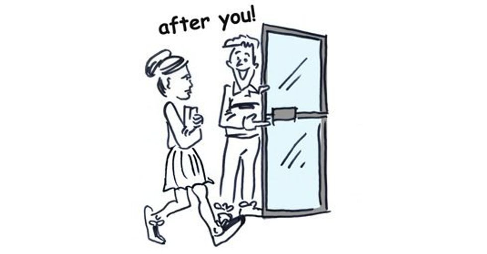 If you ever see them in the hallway, struggling with that heavy stack of books or dropping all of the contents in her purse on the floor, help her out for pete's sake! As just a general rule hold the door for everyone, but definitely go out of your way to help your crush.