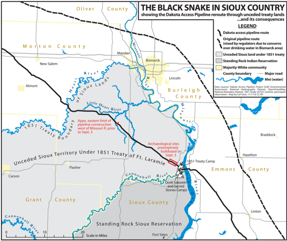 They had originally proposed going via a route that ran close to Bismarck, North Dakota a predominately white community, and their rejection then gave to the new route that goes through the Indian Reservation. I won't speculate as to why one will think that the disapproval by the citizens of these predominantly white cities, such as Bismarck, was adhered to in contrast to the militarized forces set against the indigenous people who blatantly also disapproved the DAPL.