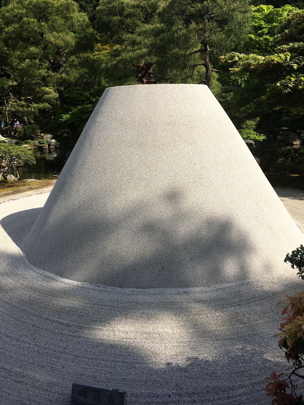The Silver Pavilion was built after the Golden Pavilion, and a lot of people think that the name was chosen to make note of the contrast between the two. While it's called the Silver Pavilion, it's not actually covered in silver, unlike the Golden Temple. Don't let that put you off, though; the pavilion itself is beautiful in its simplicity, and there are many other small buildings around it that have the same general architectural theme. Next to the pavilion is a giant sand cone called the "Moon Viewing Platform," which is so cool because its shape is so perfect.