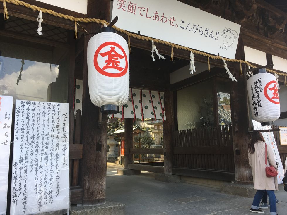 There are plenty of little shops and cafes you can stop to rest at along the climb, and a lot of them sell tasty drinks and specialty ice cream, such as ice cream with oiri or gold-coated ice cream. The main kanji character of the shrine is 金 (gold), so many of the souvenirs you can buy are gold-colored or related to money. There are also a lot of udon shops, where you can stop and eat Kagawa's specialty dish.