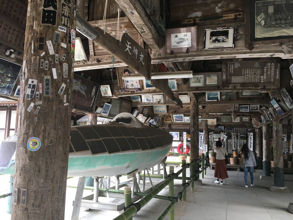 The deity of Konpira-san is the guardian of sailors and sea travel, so there was a collection of posters and pictures at the main shrine, as well as buoys and paddles that had been brought from various boats. Many sailors travel to Konpira-san to receive its protection. If they couldn't make the 1,368-step climb all the way to the inner shrine (I know I couldn't!), they sent their dogs up the mountain to represent them!