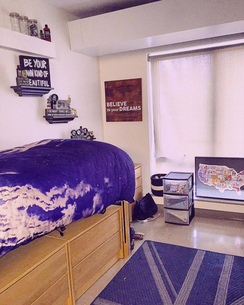 Offerings of vegan friendly snacks are welcome, but not necessary upon entering the suite for the first time; Though it wouldn't hurt for your likelihood of getting an invitation to a second or third visit. Consider packing food for your trip, considering the small mini fridge and storage space for food accompanied by the university allows only for a few bags of veggie straws, K-cups and two varieties of plant based cheese. Definitely bring an extension chord and a certified by Apple iPhone charger if you'd like to sit comfortably during staring at your phone and not engaging in conversation with others (see "Activities"). This will help since the suite's in Viking are notorious for poor placement of all of two outlets in each of thedorm rooms. Do bring a sense of humor and your inside voice, especially if visiting during the quiet hours posted respectfully in the ground level lounge where you entered. Allow yourself to travel hands free of bedding if you are planning to extend the visit past 3AM (Eastern time zone). There's always a fresh set of sheets folded neatly in the closet area, and a self-inflatable air mattress stored underneath the bed on the left of room 207A to accommodate late night tourists.