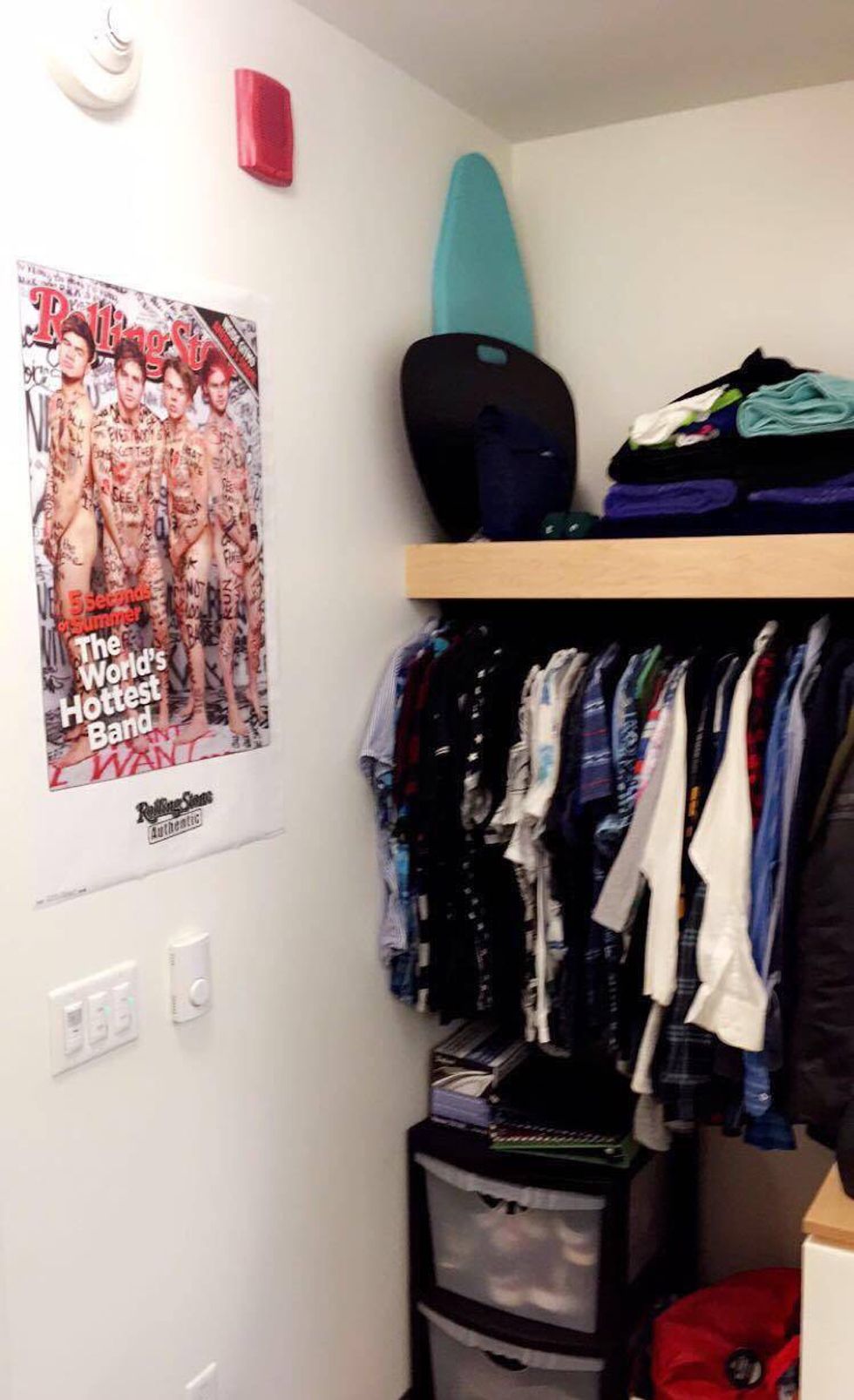 Zinging up the short staircase to the second floor of the Viking residence hall on the central campus of Salem State University is never too much of a hassle. The building in general is very well lit and filled with brightly painted rooms, so if you're first time visitors it won't take much navigating to reach room 207, the fourth suite on the right. When you reach the white board with an inviting message accompanied by a poorly drawn Disney castle, feel free to add your favorite Walt classic to the board before giving the door directly on the right of it a loud knock. Seriously though, if the knock doesn't hurt your hand at least mildly, it is highly likely the sound of pop punk music from the late 90's, early 2000's, and even the newest releases of the alternative style, are moshing over the sound of your arrival. Mind the small braided area rug when walking into the common area between the two doubles, shower room and toilet room -- it tends to get caught on the door, collecting an exorbitant amount of dust that the trusty $15 vacuum from Walmart won't take care of.