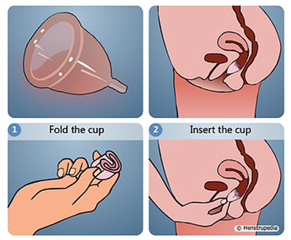 There are a lot of menstrual cups in the above picture, but I have only ever seen The Diva Cup in store, and the Softcup. The cup is pinched or folded to fit into the vaginal opening with the open part of the cup going in first. Once inserted all of the way (it will stop when it is in all of the way against the cervix), the cup will open along the base of the cervix and sits so that the pelvic muscle holds it in place.