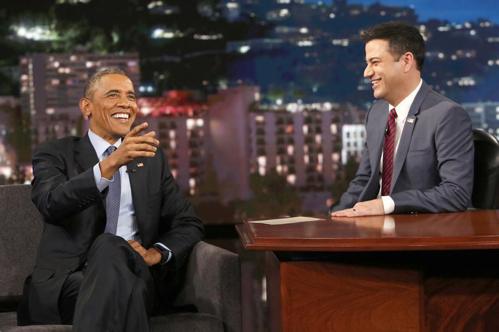 If the numerous references to Obama in music and television weren't enough, the president and first lady have also used popular channels to help bring attention to issues they care about, paving the way for other celebrities to do the same. The president and first lady have made the rounds on a number of daytime and nighttime talk shows. The first lady presented an Oscar with a group of service men and women behind her to bring attention to our armed forces.