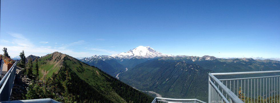 A long eight-hour drive from Boise led us to Crystal Mountain in the Cascade range, southeast of Seattle. Here it was a cold 54 degrees Farenheit and raining. My sister and I froze getting out of the truck because we figured everywhere we went would be warm and sunny since it was mid-July–wrong. We stayed the night at a very cute, old inn with a nice restaurant and gorgeous views of mountains. It's a big ski area during the winter, but a huge hit for a gondola ride in the summer. You ride up to almost 7,000 feet in elevation and see the massive beast named Mount Rainier. You have the be there to witness it, but it's gorgeous!