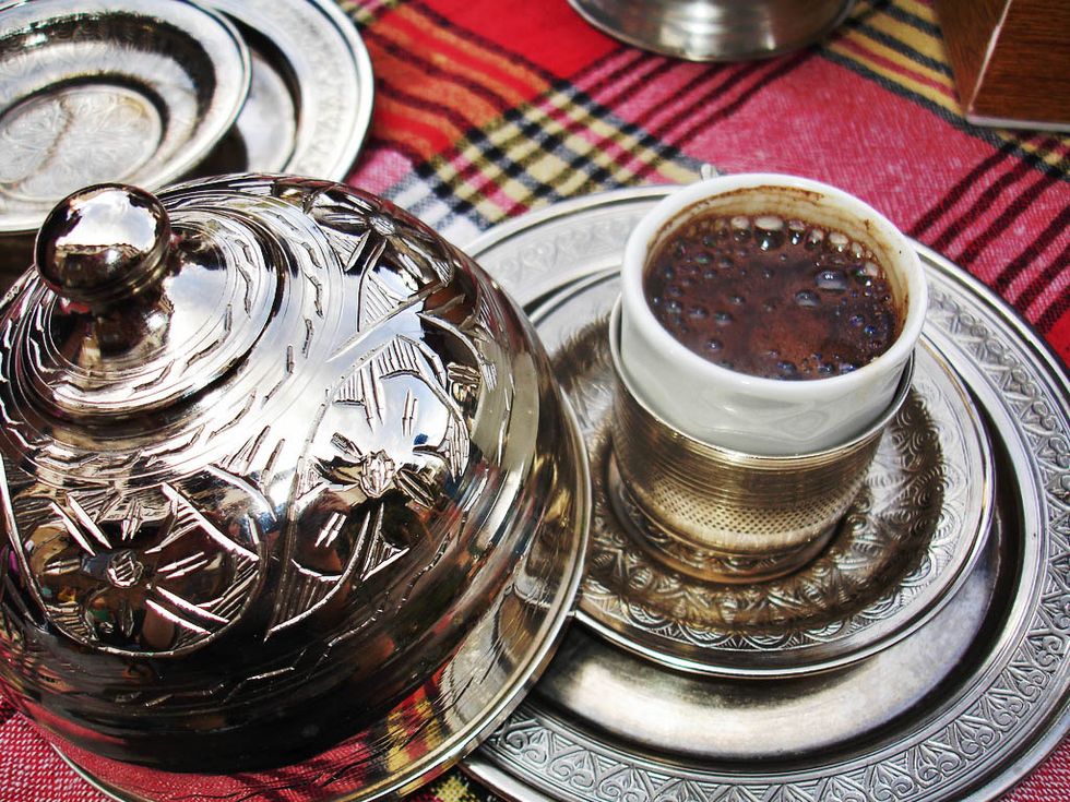 It's no problem drinking the coffee grounds out of your coffee cup in Turkey, because unlike other coffee, Turkish coffee is unfiltered. This involves the use of a cezve, small brass or copper pot, to simmer the finely coarsed roast beans leaving an exquisite coffee a la Türk kahvesi.