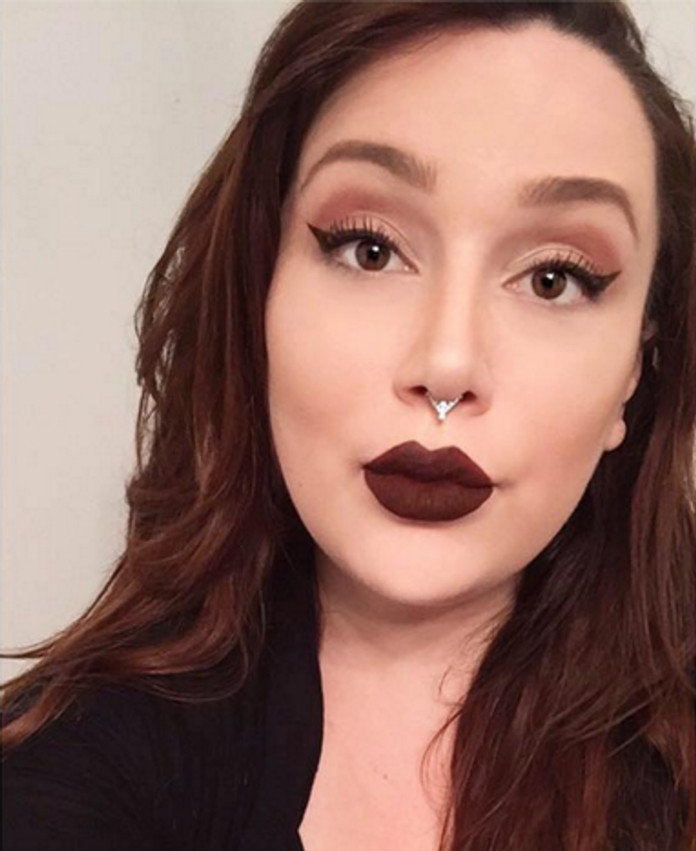 The red lip has long been a beauty staple, but the big trend today is a bit darker. Deep purples and lush berry hues are making a statement on lips across the nation. The opaque pigment and matte finish gives the wearer a chic, high fashion air, but be sure to give yourself a clean edge to finish off this bold look.