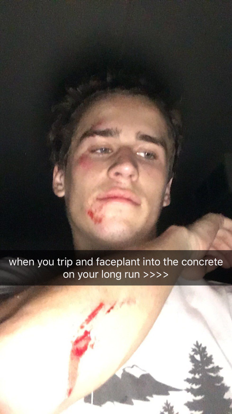 It was just a normal trail run on a normal day at Furman University. I had slept through my 7:00 AM scheduled long run for the day, so I was left to finish the mileage on my own. Long story short, I made a couple of wrong turns and ended up on an abandoned road on the edge of campus, tripped over a metal cable meant to keep cars off the road, not runners, and fell hands and face first onto the concrete.