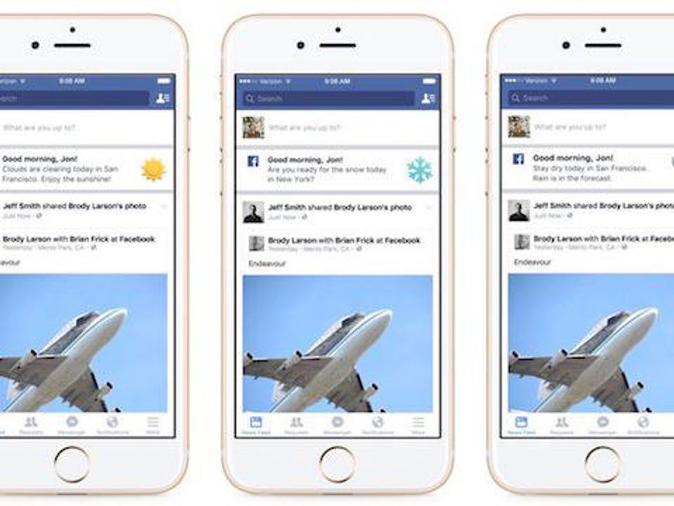 Facebook announced that the weather updates will include "helpful weather information" such as if snow or rain is expected and temperature change. 10 percent of random Facebook users have had this feature for about a week and will expand more as February ends. The feature will appear at the top of your newsfeed in the morning and throughout the day when the weather changes.