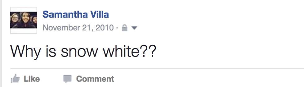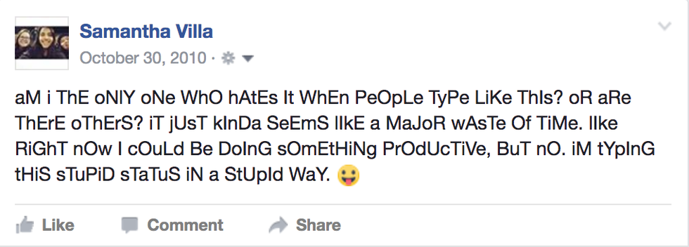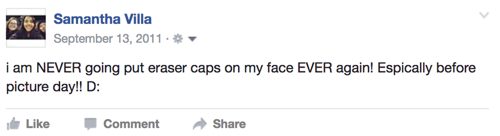 Thanks to Facebook's feature, "On This Day," I am reminded daily of how dumb and annoying I was in middle school. Why didn't my parent's have strict rules when it came to the internet? Why did I think I was cool because I had a Facebook before I was thirteen? Some of my most popular posts are the following, let's make fun of me together.