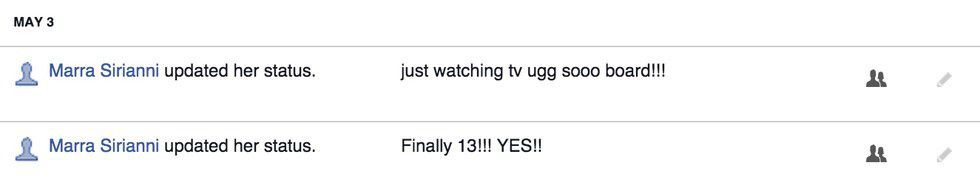 If I told my younger self that I use Facebook just as much now (if not even more) than I used to, I wouldn't believe it. The majority of my middle school years were spent on Facebook. The constant update of my life in short sentences still haunt me to this day. If you want to really laugh at yourself, and possibly cry if we're being honest, look at your activity log and read all your old statuses. I don't constantly update my Facebook friends with my doings anymore, but I do frequently check the webpage multiple times per day.