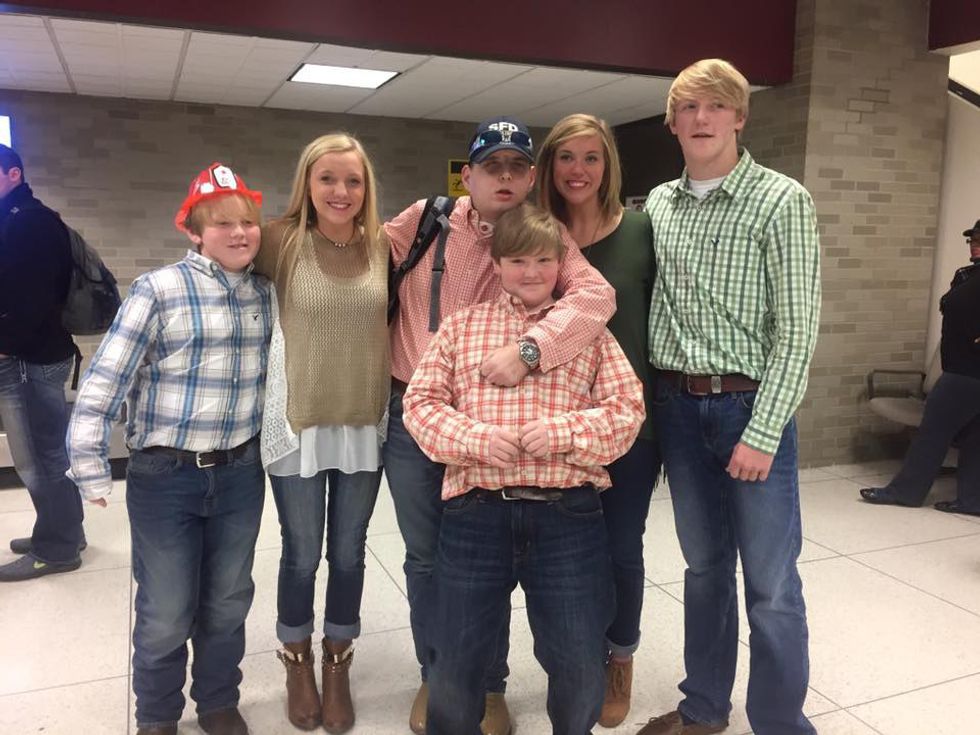 We also had to keep quiet about his surgery until Thanksgiving week, which was also the week that dad came home! We couldn't even have pictures of him on our phones because we didn't want them leaked to the media. This surgery broke medical history, and we wanted the hospital to be the first ones that announced it. It was hard keeping it a secret, but we also did it to give our dad time to heal. The day he came home was a whirlwind. Some of dad's friend planned a homecoming parade for him thru our town. We had the VIP treatment. We had a police escort to and from the airport in a limo. We had a camera crew there. We held signs that we had made. We wore fire helmets. People waited in baggage claim just to see what we were up too. Needless to say, when we saw his boots on the escalator we all started to cheer and cry.