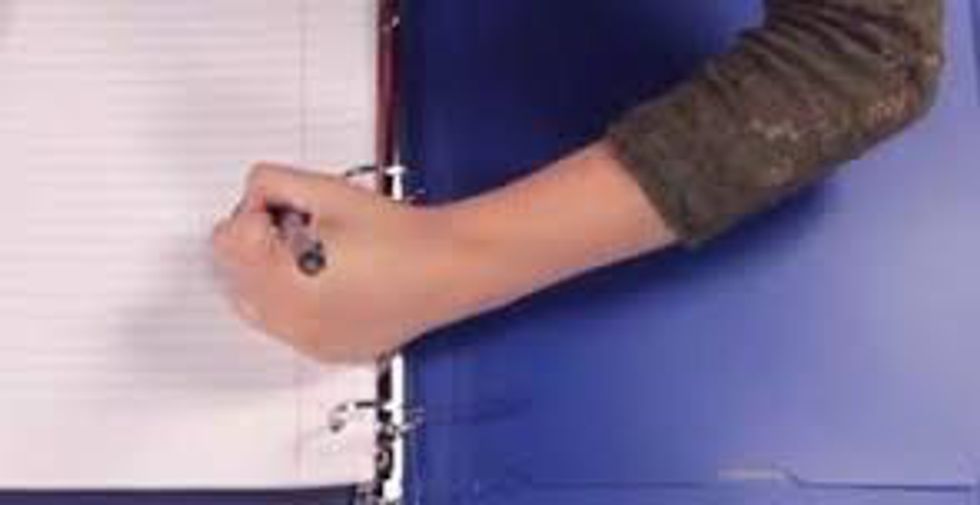 The pen and pencil smudges all over the paper, and hands..