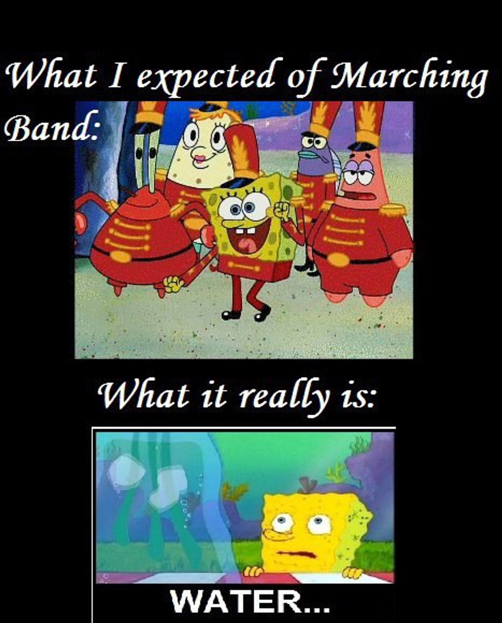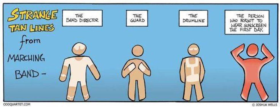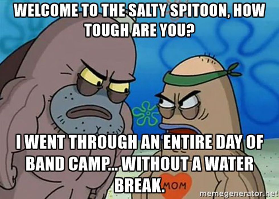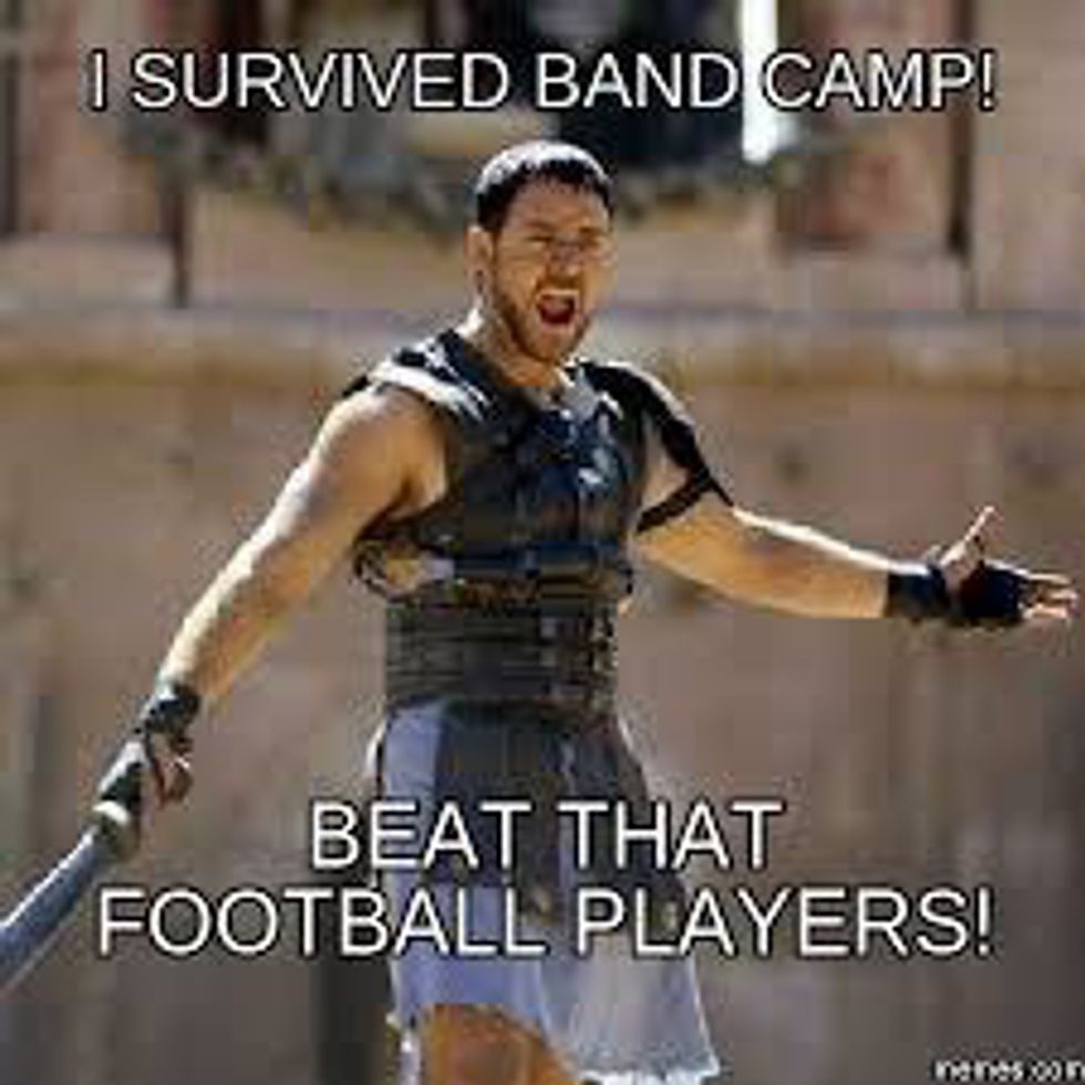 For those of us band kids, we all know the ups and downs of band camp. Whether you're laughing because your section leader made a funny joke, or crying because you rolled your ankle in one of the thousand holes on the practice field, one thing is for sure: Band camp is always interesting. For those of you who have never gone to band camp, don't worry; it's nothing at all like what is shown in movies or TV shows. Now, being that I am a guard girl, my perception of band camp is probably different from the trumpets or percussion, but there are many things that are the same. And when it comes to band camp, everyone knows:
