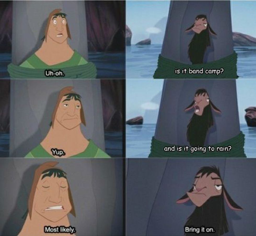 One day it's 98 degrees and no shade, the next it'll storm, the next it'll be 60 degrees and overcast. Sometimes, all three happen in the same day. You always have to be prepared to pack up and run to avoid the rain, be ready to sweat away 10+ pounds, or be so cold you hope you run it again just to warm up a little bit. Expect the unexpected at band camp.