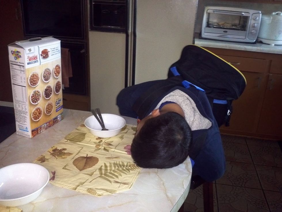 The thing about being the older sibling is that you not only have to drag YOUR butt out of bed on time, but you're also responsible for dragging another butt out of bed on time. This was probably one of the more difficult jobs for me because of 1. I am not a morning person and 2. Brad is not a morning person. Also, he would always find a way to go back to bed causing BOTH OF US to be late. Not to mention having to force him to brush his teeth and wipe the dried drool off his face. Please tell me I'm not the only one who dreaded spending the whole morning with their younger sibling?!