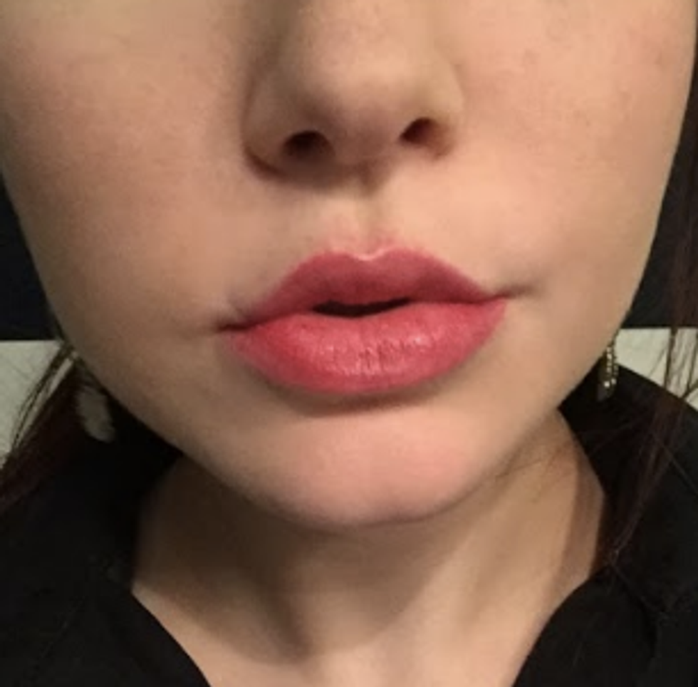 This lipstick is not as soft and moisturizing as many others, but the color is long lasting as promised. If we're being honest, this color makes me cringe, but I do get a lot of compliments so it's very possible that my distaste for pastel hues on fair skin is more of a personal preference. I encourage you to experiment with lighter shades like this one to find out how you feel about pastels paired with your skin tone to find the best fit.