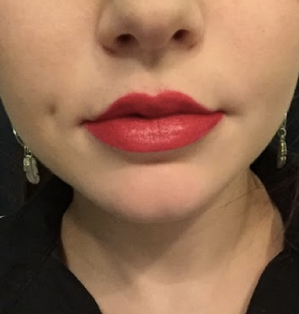 As far as true red lip colors go, this is my favorite. It is glossy and very pigmented without feeling heavy. In the photo above it is being worn alone, but like most darker shades, it pairs best with a lip liner and/or stain.