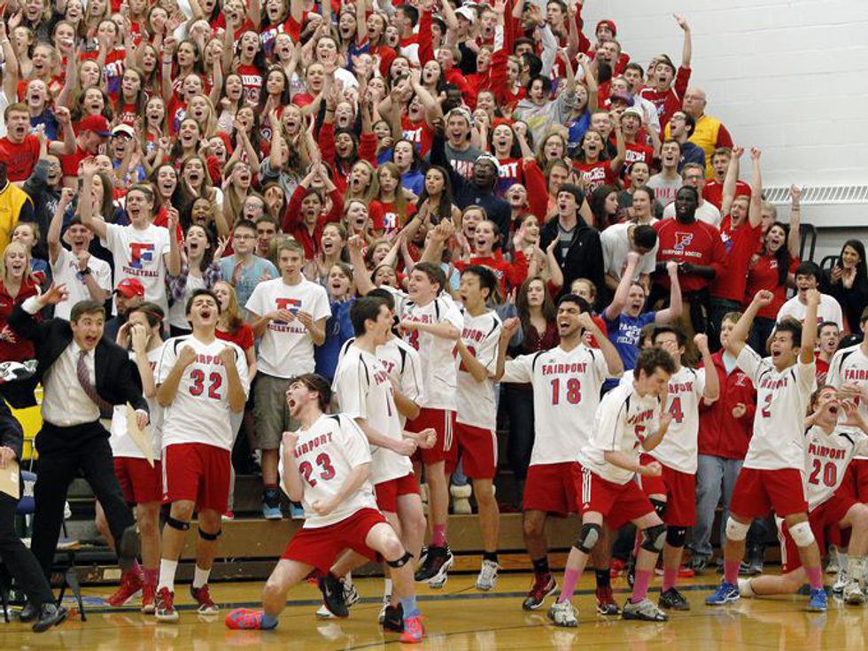 Basketball season at Fairport High School is a good time of year, think of it as March Madness for high school. When we play Rush Henrietta, we plan out the student section, get there an hour before tip off, and from there, let the cheers begin. Depending on the play, it may be getting the cheerleaders to do "alligator" or distracting the other team while they are taking their foul shots by saying the "ABCs." We are low-key jerks, but hey, what can we say... we win at least, well, most times. Its not only basketball where we have a very large crowd; you name the sport, we will have a cheering section there. Especially at the boys volleyball game against McQuaid Jesuit High School. We won that one too.