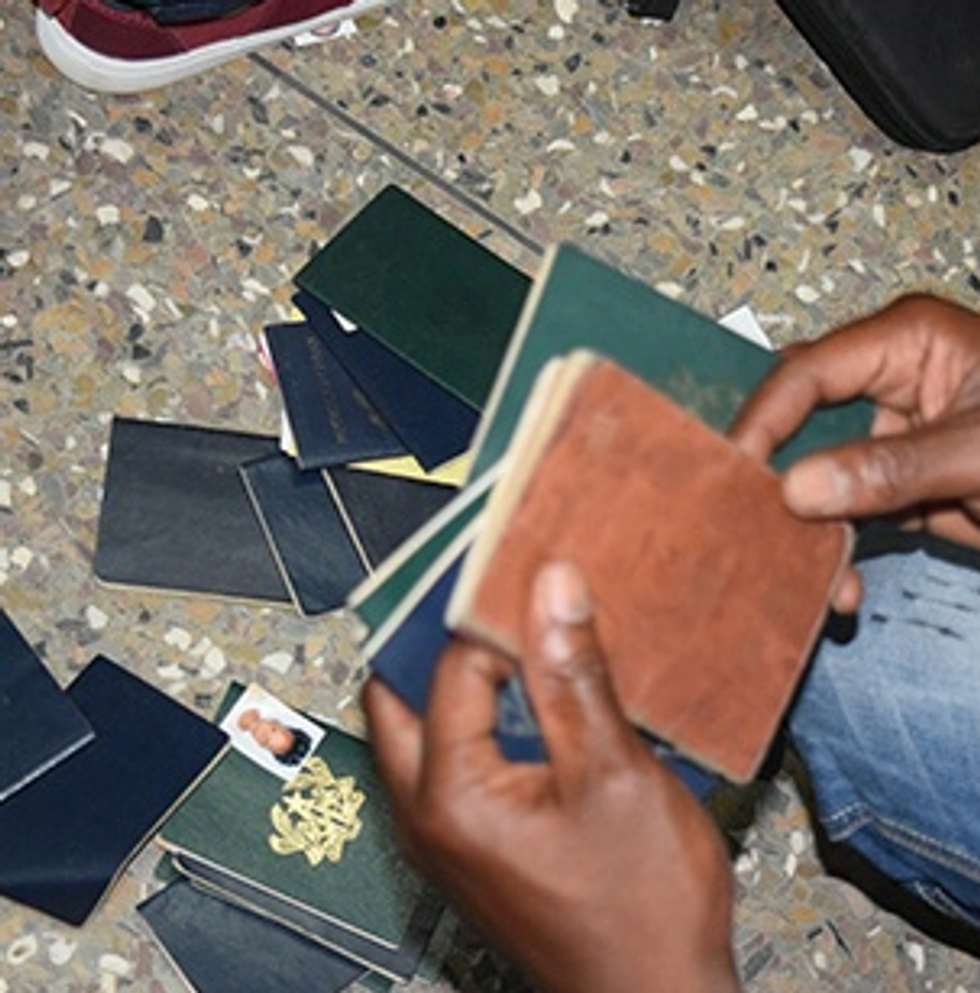 Several suspects were arrested and evidence collected included a laptop computer; smartphones; 150 passports from 10 countries; legitimate and counterfeit visas from the US, the Schengen zone, India, and South Africa; and counterfeit identity documents.