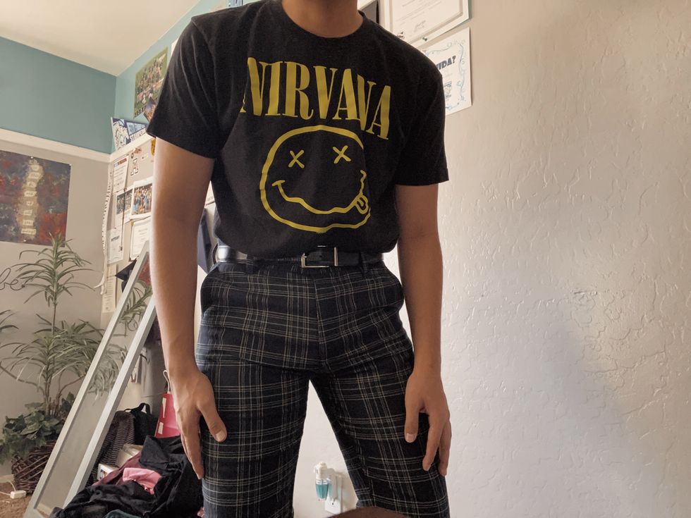 Plaid in the fall is always the way to go whether it from flannels as a layering piece to plaid pants for a more festive and vibrant look. The plaid pants shown above can be dressed down by throwing on a band tee or dressed up with a turtleneck or a long sleeve layered with a jacket of your choosing. Personally, my favorite colors for fall include: orange, brown, maroon, and a darker green. A flannel can go perfect with white or gray tops, and can also be tied along the waist for a different style approach.