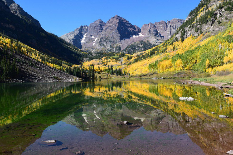 Another yellow-leaved tree, aspens hail from the north of the U.S. Foliage lovers flock to the Rocky Mountains in the fall to see the yellow trees against the mountains.